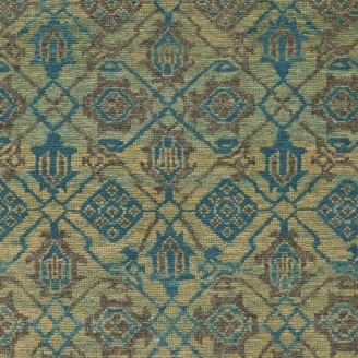 This lattice pattern is composed of palmettes and leaves filling the various compartments against the imposing ground. One has the impression that it is only part of a larger scheme designed 15th-century rug from the Mamluk era, Cairo region, Eygpt. These designs have often been described as wagirehs or samplers and were said to have been used as weaver`s aids, or for demonstration purposes, made as a template or pattern for the carpet design and production of larger rugs, they are generally small pieces the size of a scatter rug or mat. Mamluk carpets originated in a physical environment that lacked the combination of abundant marginal grazing land and a temperate climate with cool winters that were common to most carpet-weaving areas in the Islamic world. While related to a broader tradition of Turkish weaving centered in Anatolia, far to the north, the designs of these carpets include atypical elements, such as stylized papyrus plants, that are deeply rooted in Egyptian tradition. Their unusual composition and layout probably represent an attempt to develop a distinctive product that could in effect establish a “Mamluk brand” in the lucrative European export market. The uncharacteristic color scheme—devoid of the undyed white pile and employing a limited range of three or five hues in much the same value—also suggests a conscious attempt to create a particular stylistic identity. Also virtually unique in the world of Islamic carpets is the S-spun wool. It has been argued that the tradition of clockwise wool spinning originated in Egypt because of the earlier Egyptian tradition of spinning flax into linen thread. Details of the plant’s botanical structure make it impossible to spin flax fiber in the more common counterclockwise direction utilized throughout the Middle East for wool and cotton.Mamluk carpets with the color combinations seen in the Simonetti are now generally accepted as part of an earlier tradition that has many links to the weaving of Anatolia, Iran, and Syria. The “three-color” Mamluk carpets, well represented in the Metropolitan’s collection, represent a later development that continued well after the Ottoman conquest of Egypt in 1517. Many such carpets may have been produced well into the seventeenth century, and possibly even later. (Walter B. Denny in [Ekhtiar, Soucek, Canby, and Haidar 2011]). The design of the rug is interpreted by our designers from our Mamlouk-type rugs collection and soft colors are used for this rug.