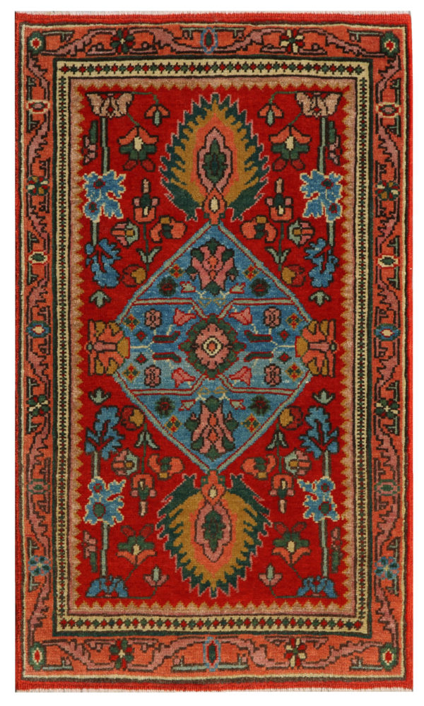 The most dramatic of the Gerous ( Garrus, Gerus, Garus ) carpets are those with an "asymmetric" design. Only a section of the original is shown, in the same way, many Lotto carpets were woven. It is difficult to guess the size of these carpets from a photo, but here we enter the area of the "Wagireh-Style" carpet. These pieces have often been described as wagirehs or samplers and were said to have been used as weaver`s aids, or for demonstration purposes, made as a template or pattern for the carpet design and production of larger rugs, they are generally small pieces the size of a scatter rug or mat. This seems unlikely as most of these carpets are often at least 2 x 3 meters, and even larger sizes are known. A weaver could not deal with such measures as a work aid, for which smaller mats were available, and a salesperson would have presented original carpets. It seems clear that the "Wagireh-Style" designs are complete carpets. Other types of Bidjar ( Bijar ) carpets were also thus a woven-a group of medallion-palmette carpets. The design of this rug is interpreted by our designers, and soft colors are chosen for this rug.